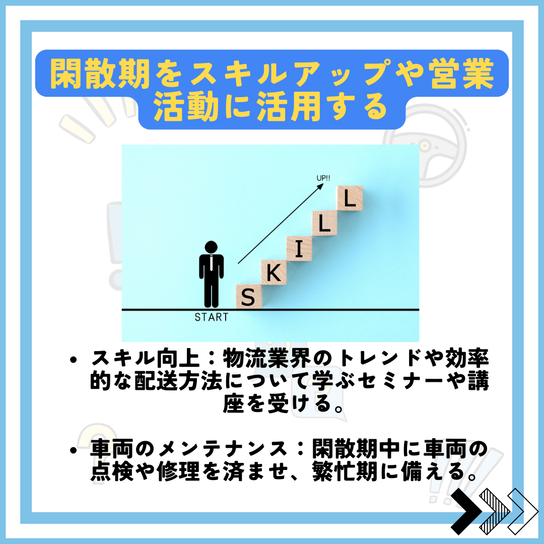 閑散期は仕事量が減る分、自己投資や準備に時間を使える貴重な時期です。ここでの過ごし方が、次の繁忙期でどれだけ効率よく稼働できるかに直結します。