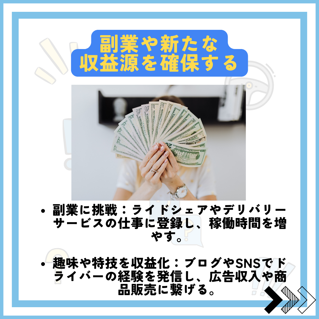 閑散期には新しい収益の柱を作ることもおすすめです。ドライバーの仕事と親和性が高い副業に挑戦することで、収入の安定度が増します。